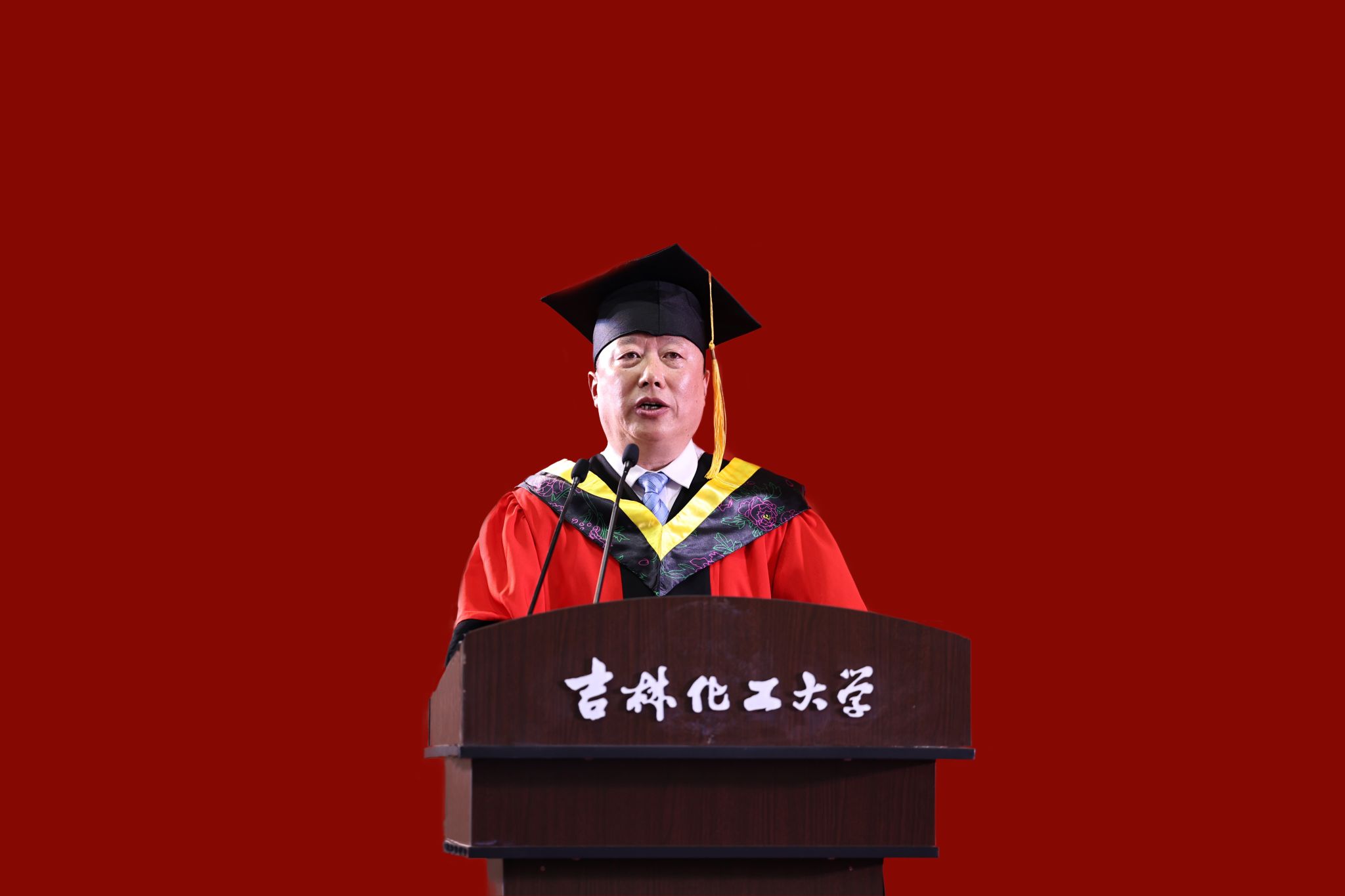 艾学忠为毕业生代表正冠扶苏并授予学位,为优秀校友代表于广臣、宋德武颁发纪念版毕业证书。他在讲话中对毕业生提出四点希望,要以科技报国之心擎起时代旗帜。将个人理想融入中国式现代化的壮阔征程,让青春在科技自立自强的熔炉中百炼成钢。要在新能源材料、智能化工、生物医药等战略领域勇闯“无人区”,在突破“卡脖子”技术的攻坚中智探“创新峰”,以吉化智慧赋能强国建设,以绿色科技守护美丽中国,书写新时代工程师的使命担当。要以精益求精之魂传承工匠精神。要弘扬学校扎根工程教育六十七载的深厚底蕴,在产业一线中锤炼“毫厘不差”的严谨,在技术攻关中秉持“千万锤成一器”的执着。无论身处实验室还是生产车间,始终以“显微镜下见功力”的追求锻造大国工匠的脊梁。要以坚韧不拔之志开拓人生疆界。面对技术瓶颈的壁垒、产业变革的浪潮、人生际遇的起伏,当以吉化人特有的韧性与智慧,于挑战中捕捉机遇,在困境中淬炼成长。要以守正创新之姿引领未来风潮。既要坚守科学伦理与工程规范的底线,敬畏自然、尊重生命;更要敢于突破思维藩篱,拥抱学科交叉融合,探索前沿未知。在传承中锐意求新,在变革中坚守正道。以批判性思维洞察本质,以创造性思维开辟新局,成为定义未来、塑造变革的先行者。